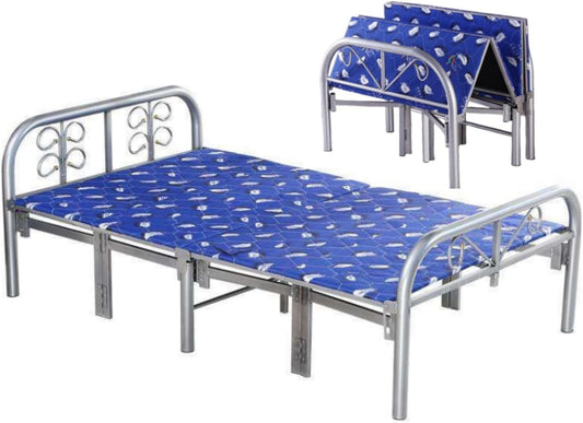 SKY-TOUCH Folding Bed 190x 90cm, Folding Single Bed Heavy Duty Steel Metal Platform Bed Frame with Tool Free Setup,Blue
