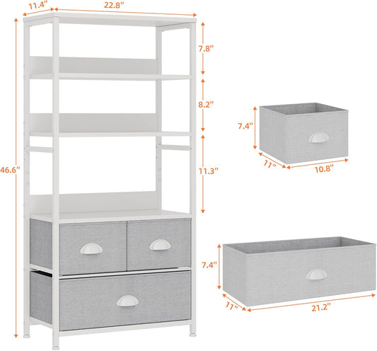 SKY-TOUCH 4-Tier Storage Drawer Shelf with 3 Fabric Drawers – Metal Frame & Wood Top,– Ideal for Books, Photos, and Decorations in Living Room, Office, Bedroom, and Kitchen,White 22.9 * 11.6 * 56.7 in