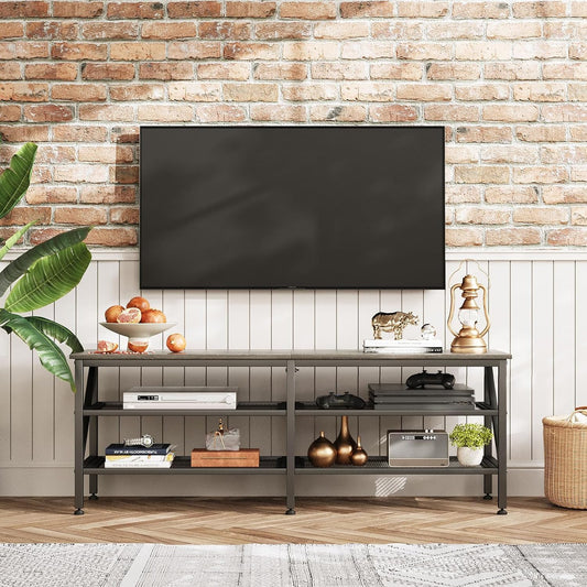 SKY-TOUCH TV Stand : Modern TV Table Wide TV Entertainment Center with Storage Shelves Sturdy Wooden TV Console Table with Metal Frame for Living Room (160 * 40 * 50CM Grey Oak)