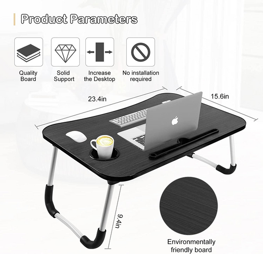 SKY-TOUCH Portable Folding Laptop Desk for Bed,With iPad and Cup Holder Adjustable Lap Tray Notebook Stand, Foldable Non-Slip Legs Reading Table Tray for working,studying,camping 60x40x28cm Black