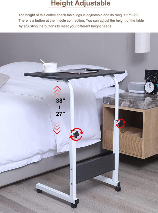 SKY-TOUCH Laptop Table Height Adjustable,Mobile Laptop Stand Coffee Table Side Table,Movable Portable Adjustable Notebook Stand With Wheels For Sofa, Bed, Balcony, Garden, 60X40Cm, Brown