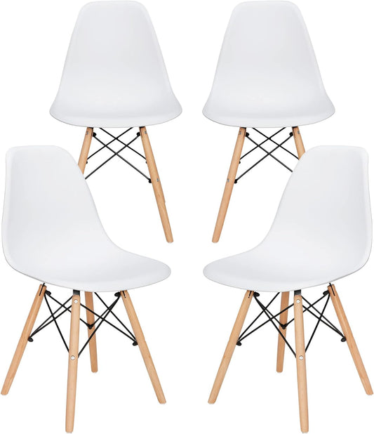 SKY-TOUCH pack Modern Dining Chair Dining Side Chairs set of 1, Simple Office Chair, Lounge Shell Chair with Folding Wood Legs and Plastic Seat, for Kitchen, Dining, Bedroom, Living Room,White