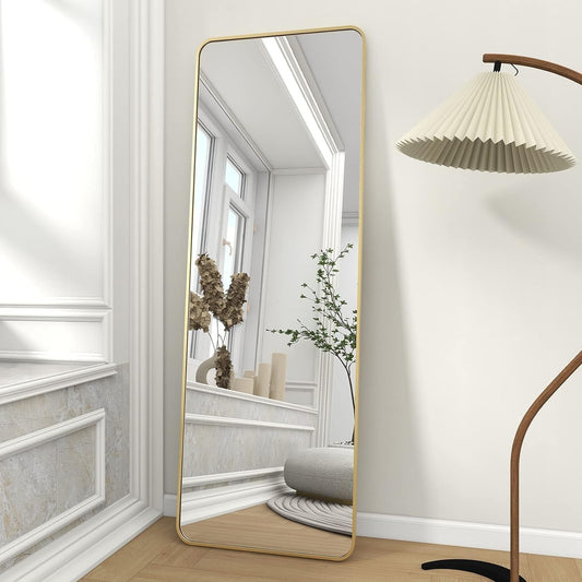 SKY-TOUCH Full Length Mirror 155x45cm, Floor Mirrors with Aluminum Alloy Frame Free-Standing Leaning Large Bedroom Dressing Mirror, Full Body Mirror with Stand for Living Room,Bedroom, Gold
