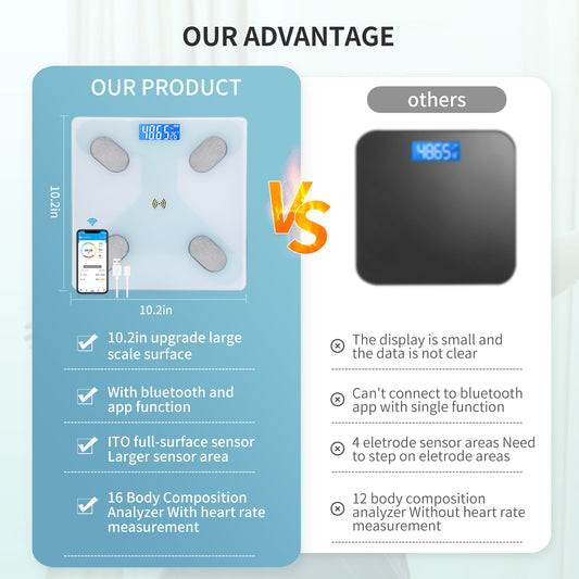 SKY-TOUCH Multifunctional Smart Body Fat Scale, Electronic Led Digital Weight Bathroom Scale With Smartphone App, Support 17 Languages And Indoor Temperature Measurement, 260*260*23Mm Whtie