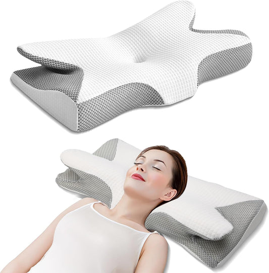 SKY-TOUCH Memory Foam Pillow, Cervical Pillow for Neck and Shoulder, Orthopedic Pillow, Ergonomic Neck Support Pillow for Side/Supine/Prone Sleepers - Removable Pillowcase and Zippered