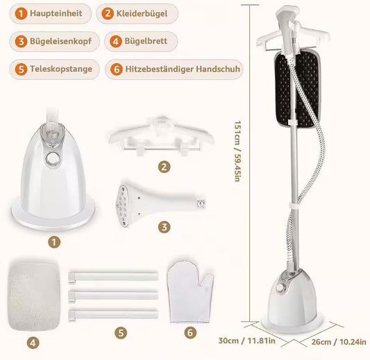 SKY-TOUCH 1800W Vertical Garment Steamer for Clothes,Quick Care with Powerful Steam Upto 35g/min,1.4L Detachable Tank,Glove,Ideal for Delicate Clothes and Long Garments,10 Gear Adjustment