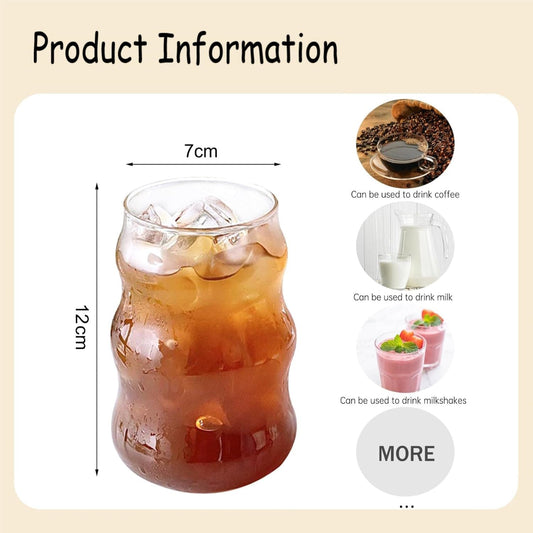 SKY-TOUCH 2 Pcs Ribbed Glass Cups 530ml, Aesthetic Ripple Drinking Glassware for Iced Coffee, Juice, Milk, Tea, Smoothies, Cold Beverages, Vintage Bubble Tumbler Set