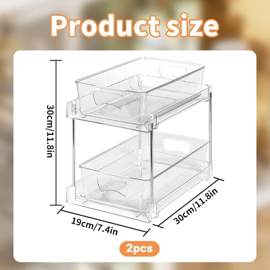 SKY-TOUCH 2 PACK Pull-Out Kitchen and Bathroom Storage Organizer, 2 Tier Clear Under Sink Organizers Vanity Counter Storage Container, Pull-Out Organization with Track for Pantry, Kitchen