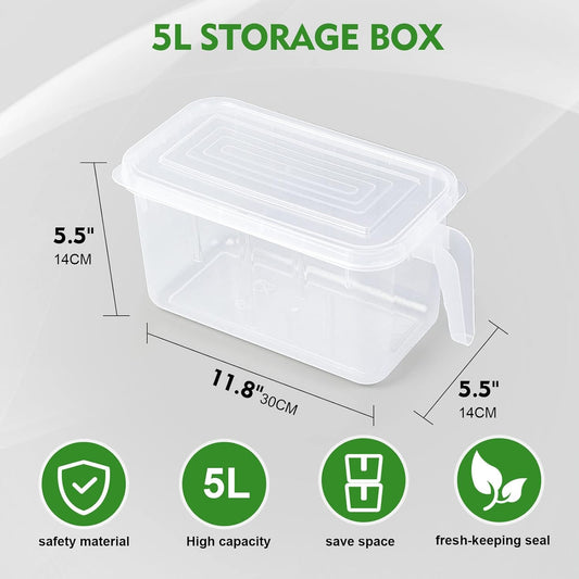 SKY-TOUCH 3 Pieces Refrigerator Organizer, Stackable Plastic Kitchen Food Storage Containers with Lids and Handle for Fruits and Vegetables, Freezer Safe Food Storage Boxes, Transparent