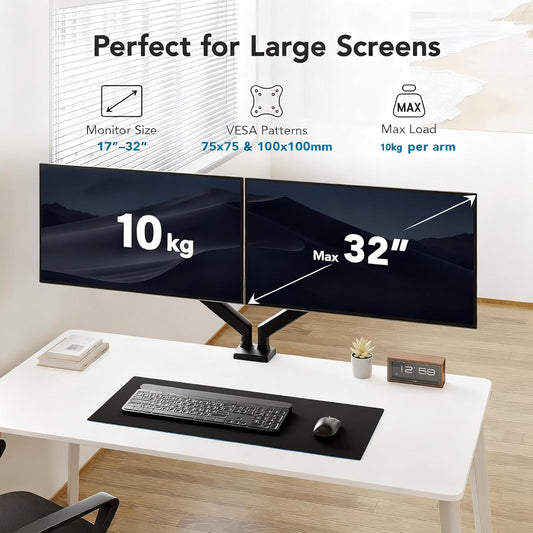 SKY-TOUCH Dual Monitor Stand for 17–32 Inches, Adjustable Gas Spring Dual Arm Mount, Heavy Duty Full Motion Monitor Desk Mount with Clamp & Grommet Base, VESA 75x75/100x100, Holds up to 10kg per Arm