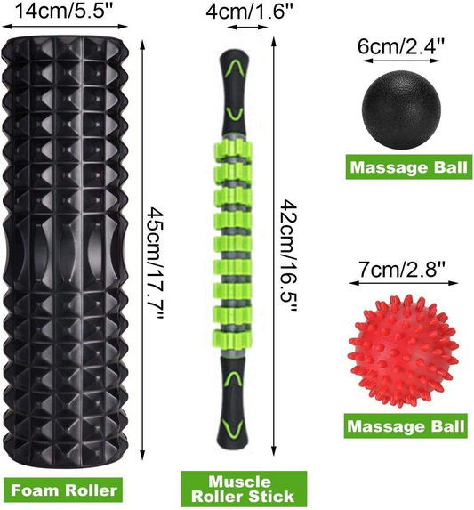SKY-TOUCH 5 In 1 Fitness Foam Roller Set With Muscle Roller Stick And Massage Balls For Physical Therapy Pain Relief Myofascial Release Balance Exercise, Multicolour