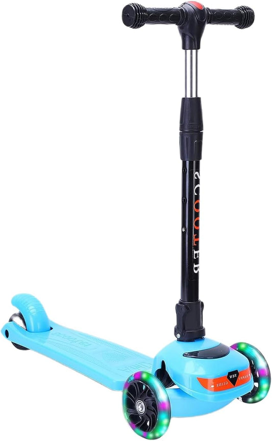 SKY-TOUCH Kids Scooter, 3 Wheel Foldable Kick Scooter with Flashing LED Lights for Boys Girls Ages 2-12, Adjustable Height, Lean to Steer, Non-Slip Deck, Lightweight Push Scooter for Children
