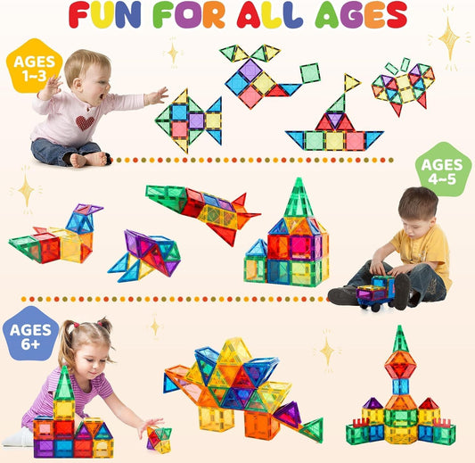 SKY-TOUCH 100pcs Magnetic Tiles Set - 3D Magnetic Building Blocks, Educational Construction Magnet Toys for Kids–Inspirational Creative STEM Learning Gifts for Toddler Car Base + Storage Box,Age 3-15