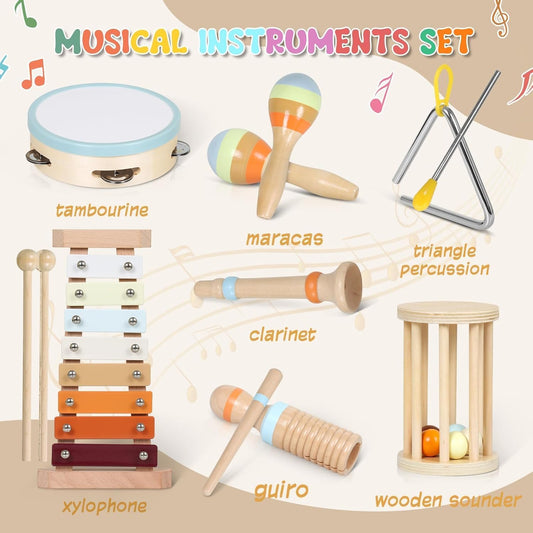 SKY-TOUCH Montessori Wooden Musical Instrument Set, Percussion Baby Xylophone Toy, Children's Birthday Gift, Baby Music Educational Toy, with Storage Bag, Suitable for Children Over 3 Years Old