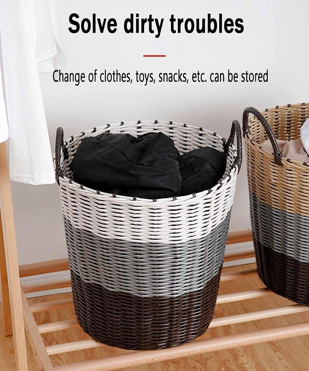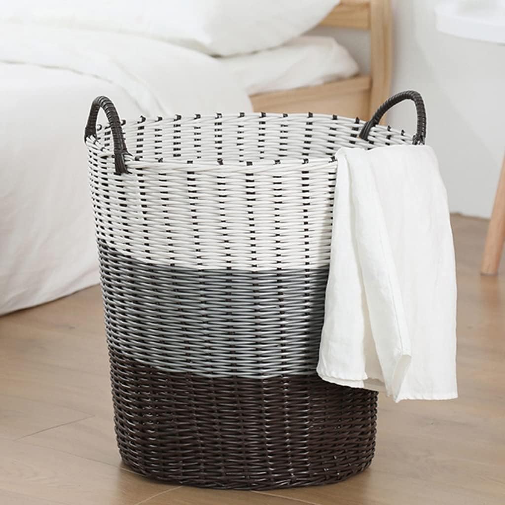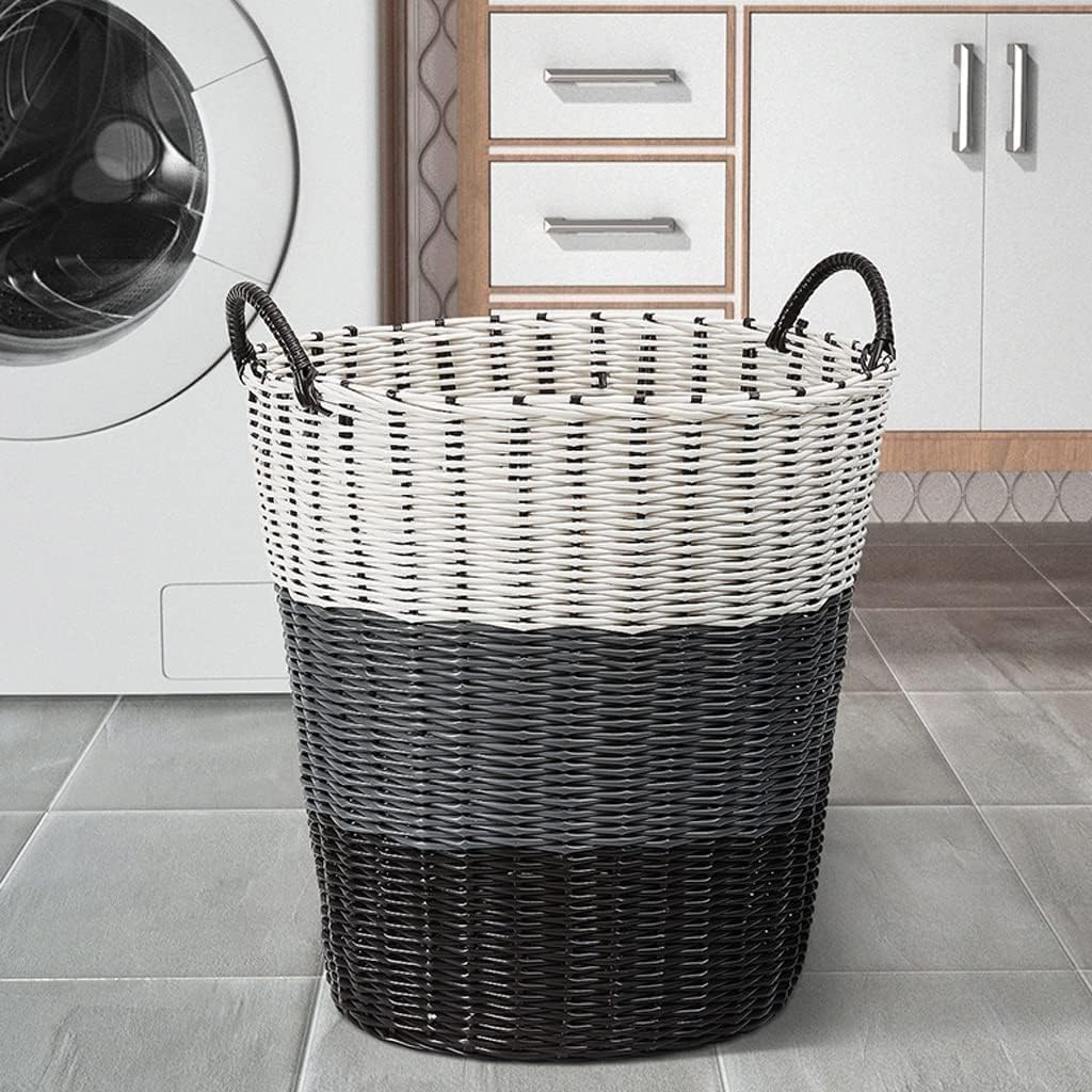 SKY-TOUCH 1 piece Dirty Clothes Weaving Basket,with Handles Washing Bin Dirty Clothes Storage,Durable Plastic Woven Toy Storage Basket,Household Bathroom Bathroom Laundry Basket,Multi Color,34*46*45cm