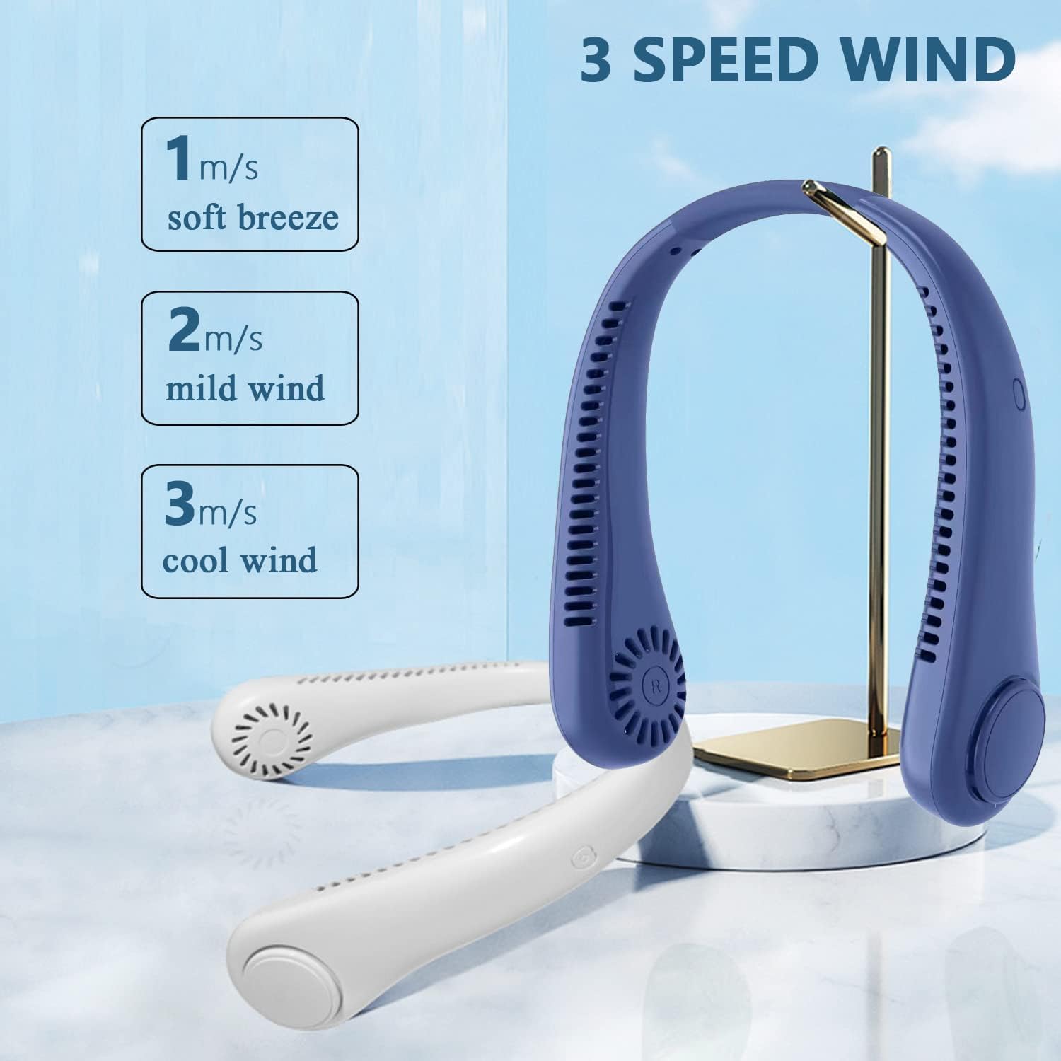 - 【Adjustable 3 Wind Speeds & 104 Air Outlet】- The wearable neckband fan offers 3 different wind speeds, low, medium and high speed modes. You can change the speed according to your need. Double-sided air outlet design, 72 air outlets above and 32 air outlets below, keep you cool in hot summer, give you 360 degrees of quiet and powerful airflow.