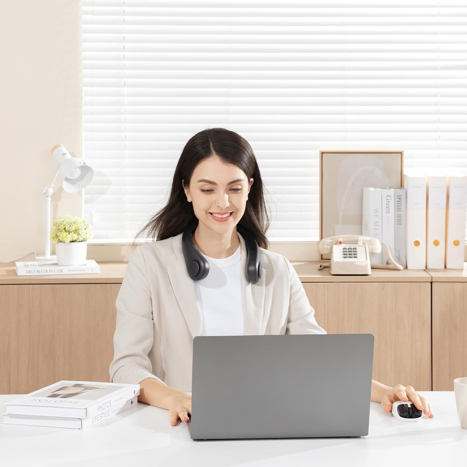 - 【Premium Neck Fan】- The bladeless neck fan is made of high-quality ABS and soft silicone material, which is soft to the skin, effectively non-slip, provide you a wonderful comfort. Super air supply, fast cooling in 3 seconds and easily relieves hot flashes and sweating.both suitable for wide or slim neck, no worry it will be too tight for your neck.