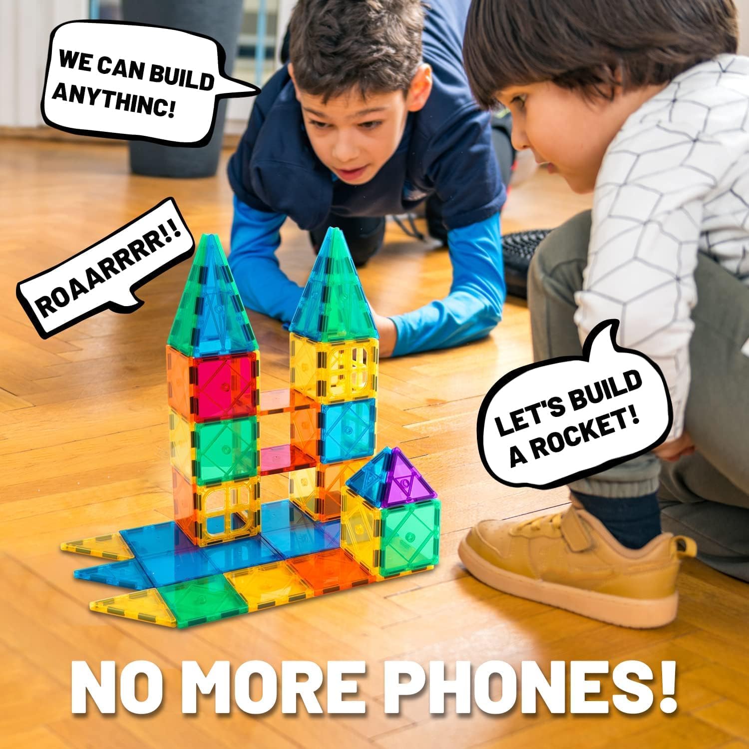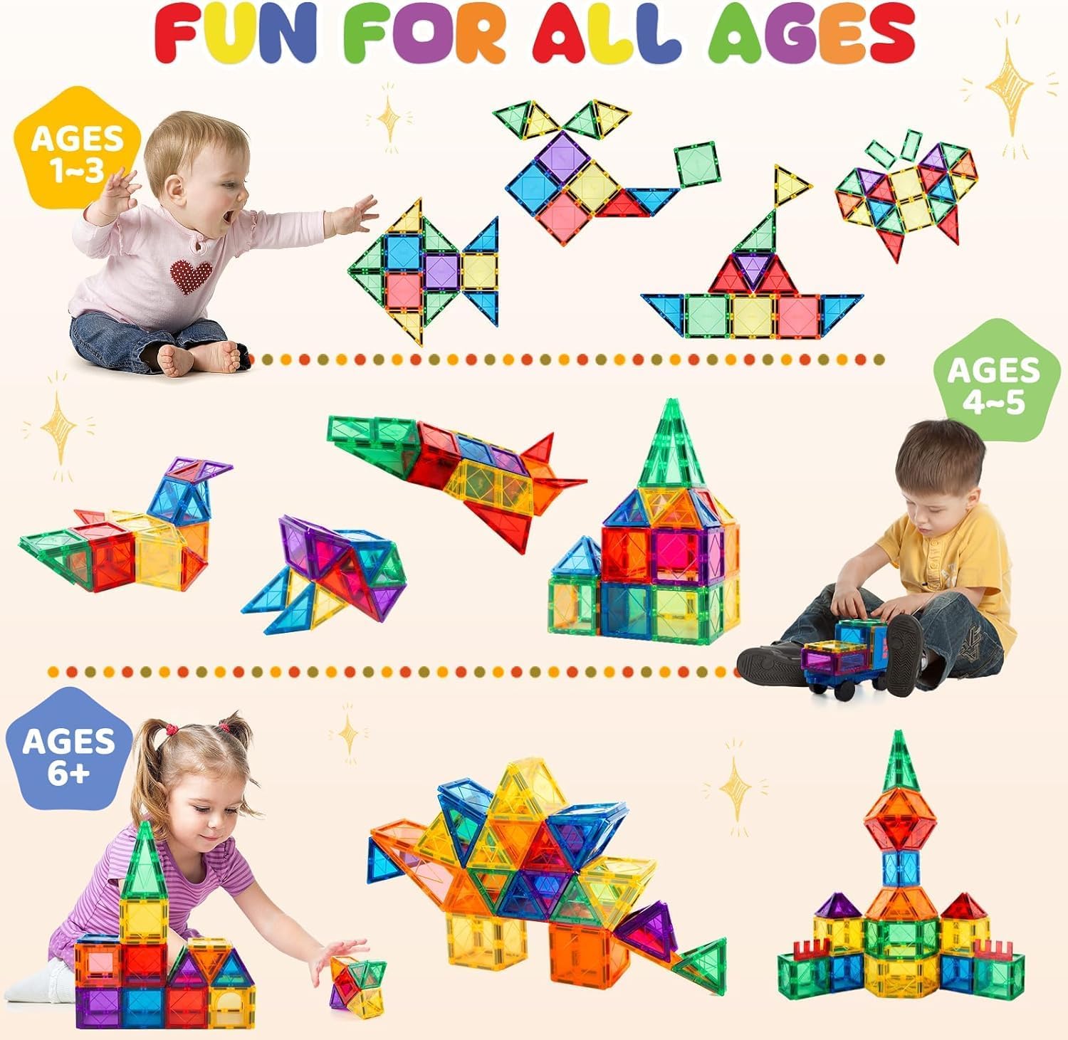 - [Upgraded Version] With a significantly increased number of magnetic pieces, this set offers an even better playing experience. Enjoy the enhanced fun and excitement with more magnetic pieces. Compatible with most other branded tiles. Children can create a greater variety of 2D planar shapes or 3D geometry and experience a greater sense of accomplishment!