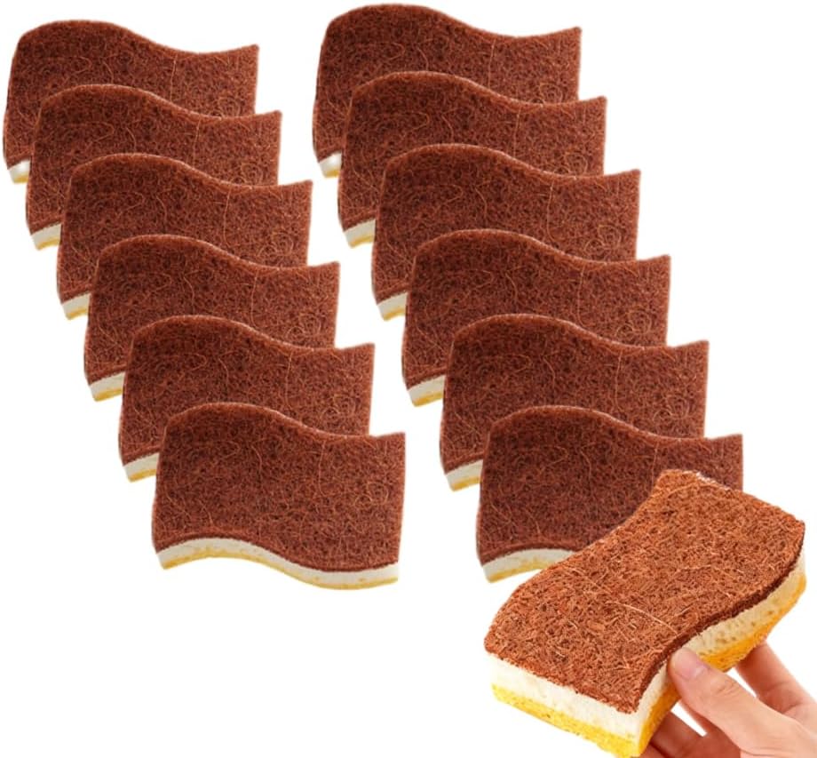 SKY-TOUCH 12 PACK Cleaning Sponges, Natural Jute Pulp & Coconut Fiber Scrubber Sponges for Dishwashing, Pot Scrubbing, and Kitchen Cleaning, Eco-Friendly, Durable, Multi-Purpose Sponges