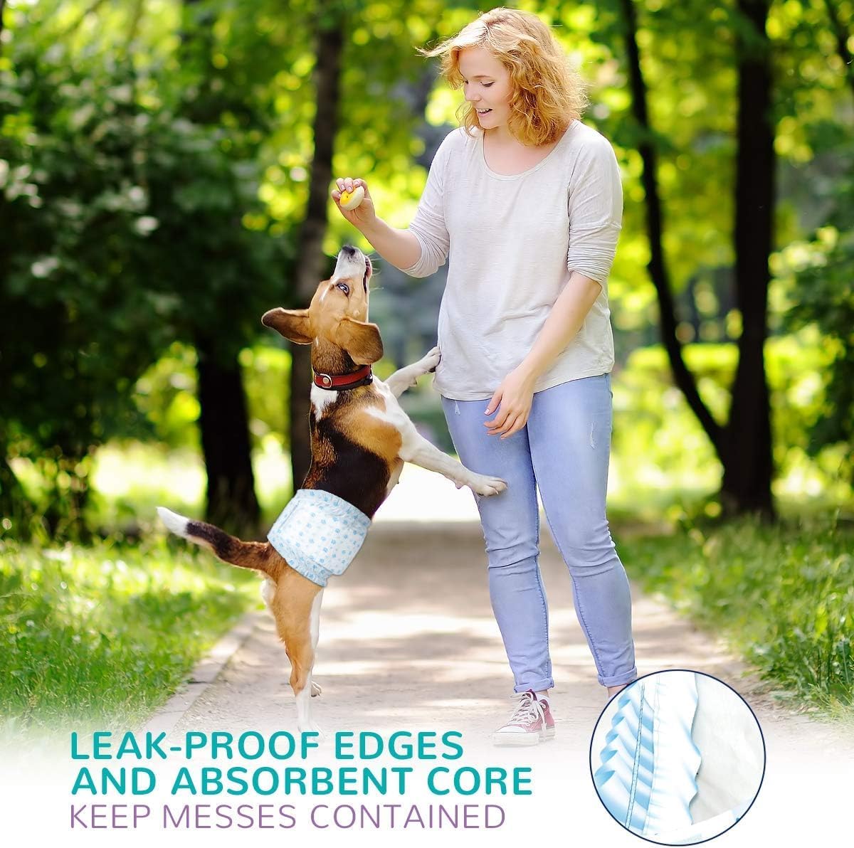 - BREEZY & SOFT - Made of pure cotton, our disposable male dog nappies are very soft, without irritation and additive, especially to carefully protect the genitals of the dog, super airy and dry, keeps your dog in a good mood. The male puppy nappies are made of premium materials and extremely easy to take on and off.