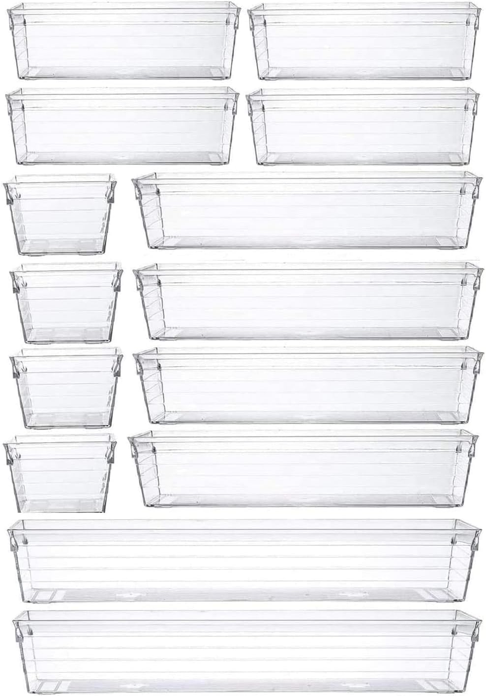 SKY-TOUCH 14pcs Clear Plastic Drawer Organizers Tray for Makeup Storage,4-Size Storage Organizer Divider Trays for Kitchen, Bathroom, Makeup Utensils and Office