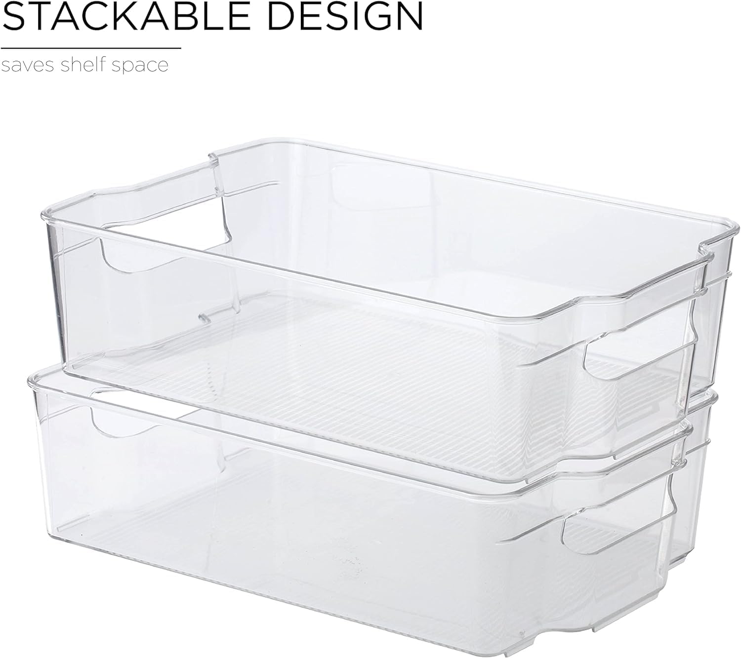 SKY-TOUCH 2pcs Refrigerator Clear Organizer Bins,Clear Plastic Storage Fridge Organizers with Handle for BPA,Fridge, Freezer, Cabinet,Kitchen,Food mPantry Organization & Storage(32x16x9cm)