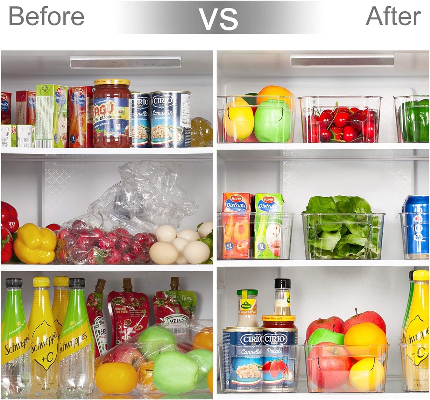 - Multifunctional:Refrigerator organizer can store the food in the refrigerator, it will make your refrigerator more tidy, clear organizing bins can also be placed in the cabinet,kitchen or bathroom.The fridge bins can't be put in the dishwasher.Please clean it with mild soapy water