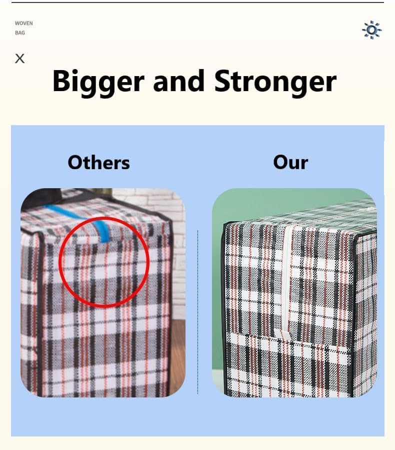 - Durable and Heavy Duty: Made from thick, 180 GSM coated polypropylene woven material, these bags feature full surround and reinforced carrying handles. This construction ensures they can withstand heavy loads and daily use, making them a reliable alternative to traditional moving boxes.