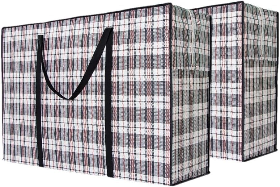 SKY-TOUCH 2Pcs 90 * 60 * 25cm Heavy Duty Extra Large Moving Bags : Foldable Large Capacity Woven Bags with Carrying Handles Quilt Clothes Storage Bag with Double Zippers (135L Black)