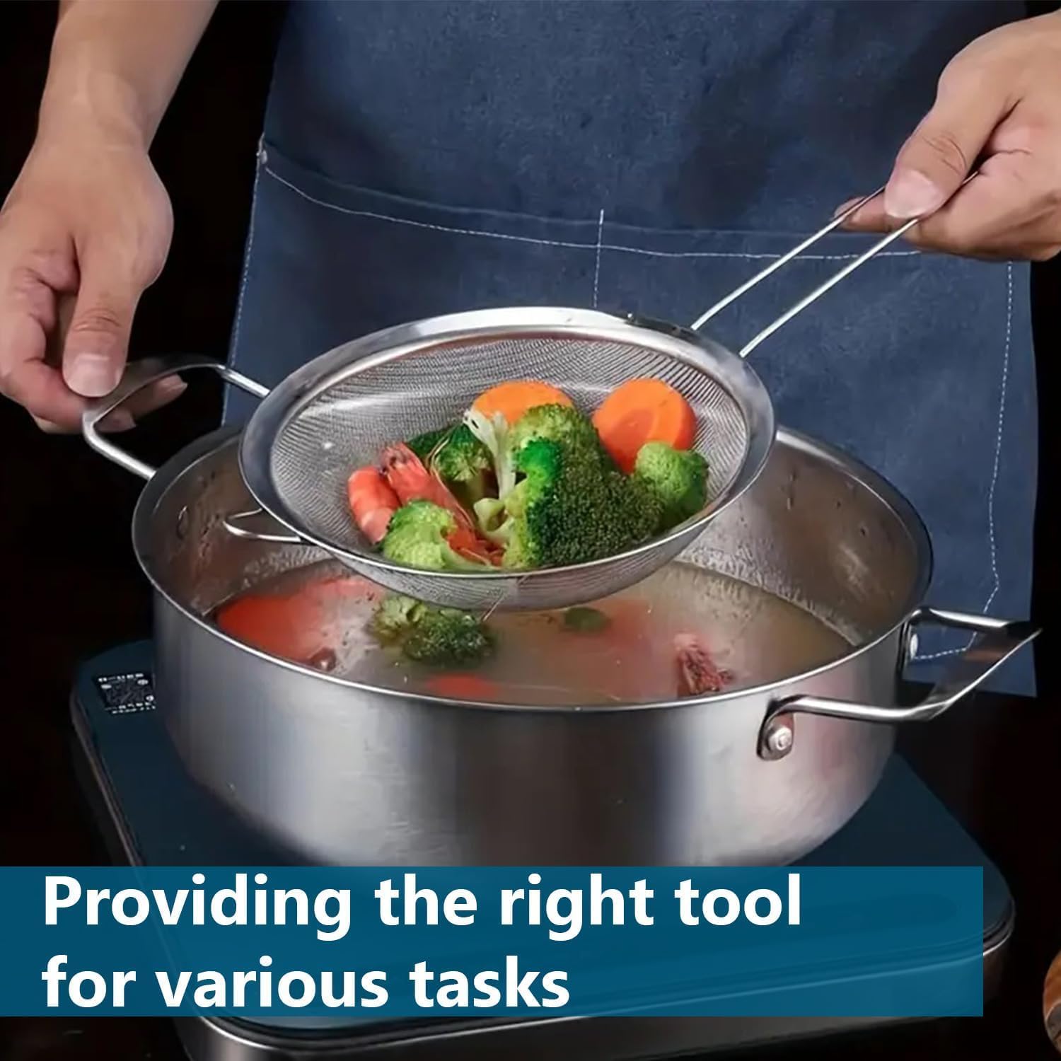 - Comfortable Handle & Easy Storage: Each strainer comes with a long handle for easy handling, and their lightweight, compact design makes them easy to store or hang in the kitchen for quick access.