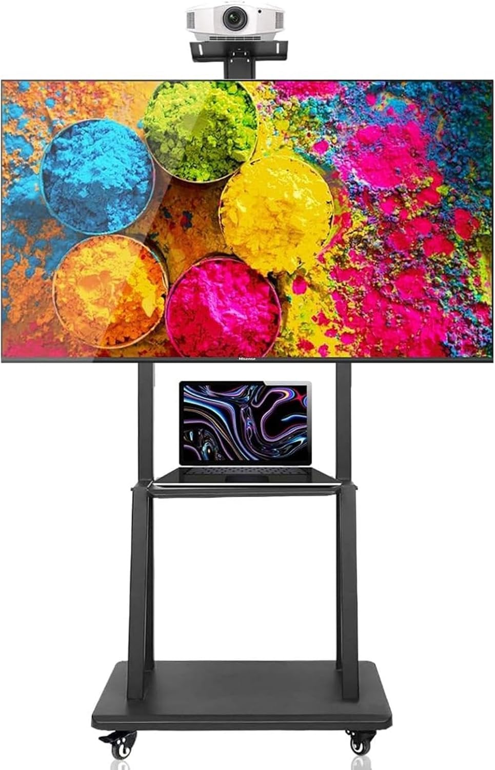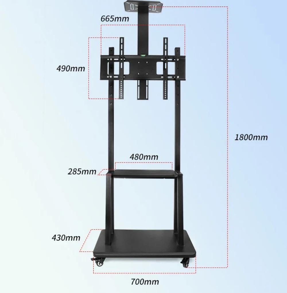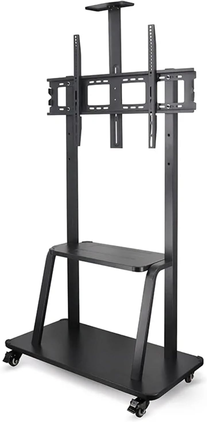 - Heavy Duty Mobile TV Stand - The main frame, shelves and base are made of high-quality steel that is strong, thick and durable. With screws tightened all the parts, you get a strong stand to support your large tv screen, safe and secure. Matte black color easy matching with any place