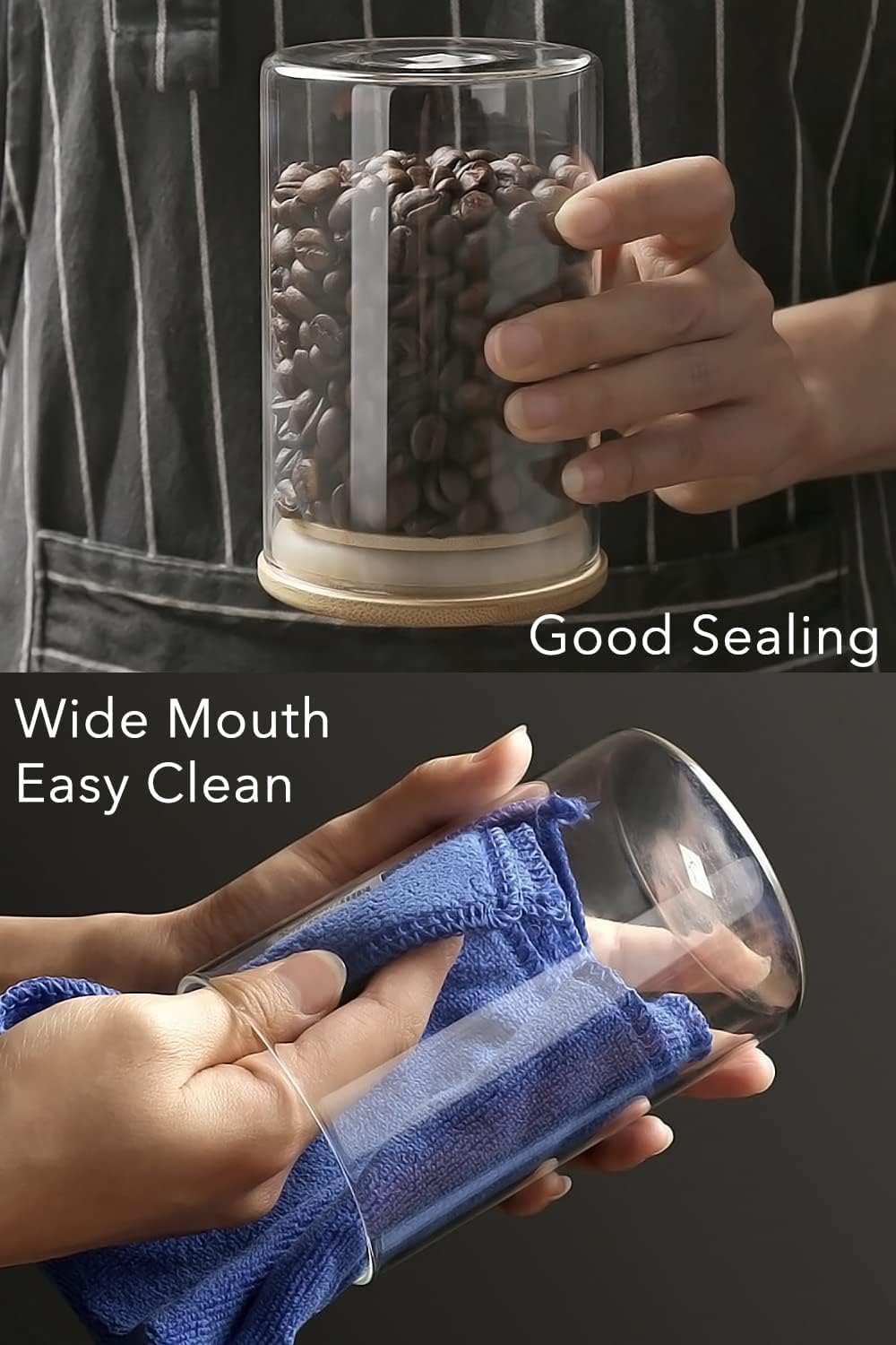 - Elegant and Functional: The sleek, minimalist design of these glass jars with bamboo lids adds a touch of sophistication to any kitchen or pantry. Not only are they practical for food storage, but they also serve as decorative elements that enhance the overall aesthetic of your space, making your home tidier and more organized.