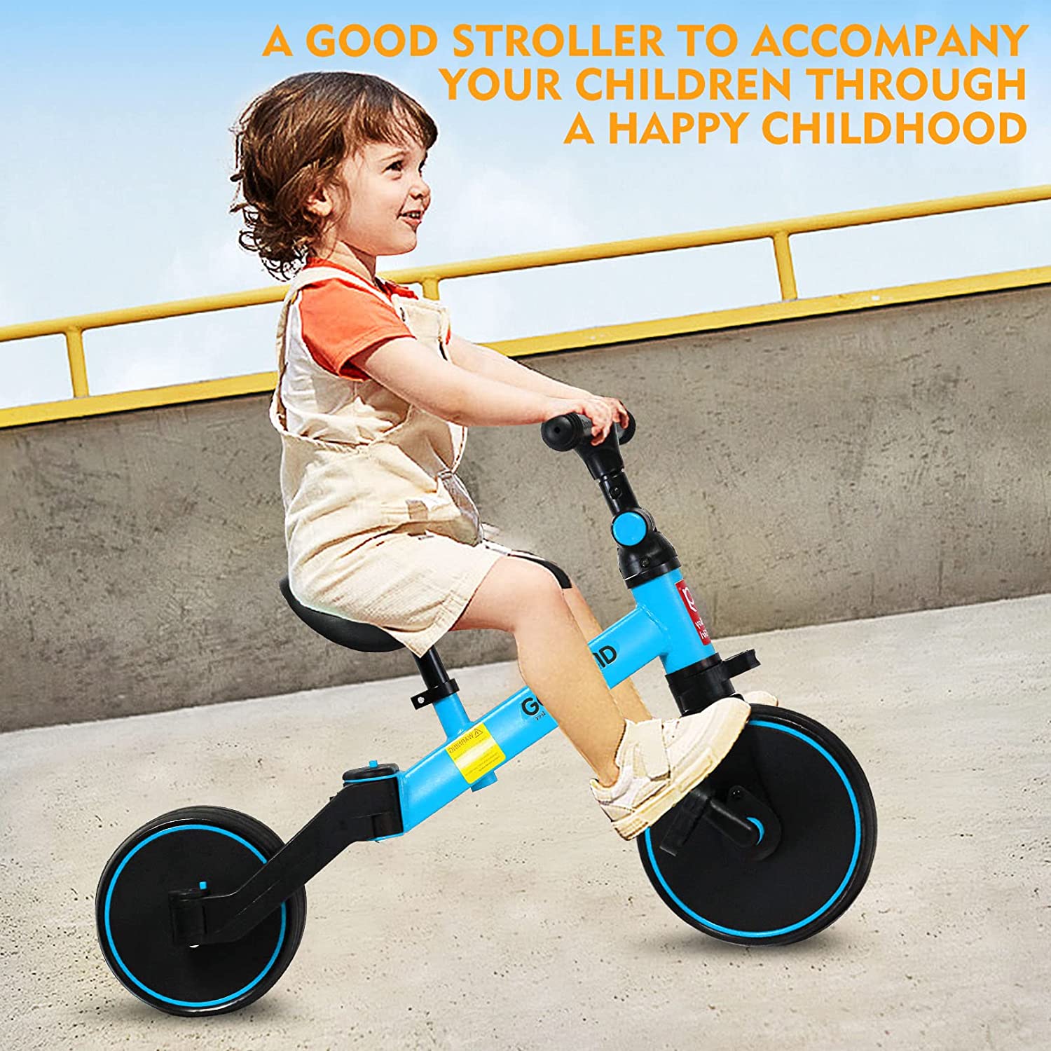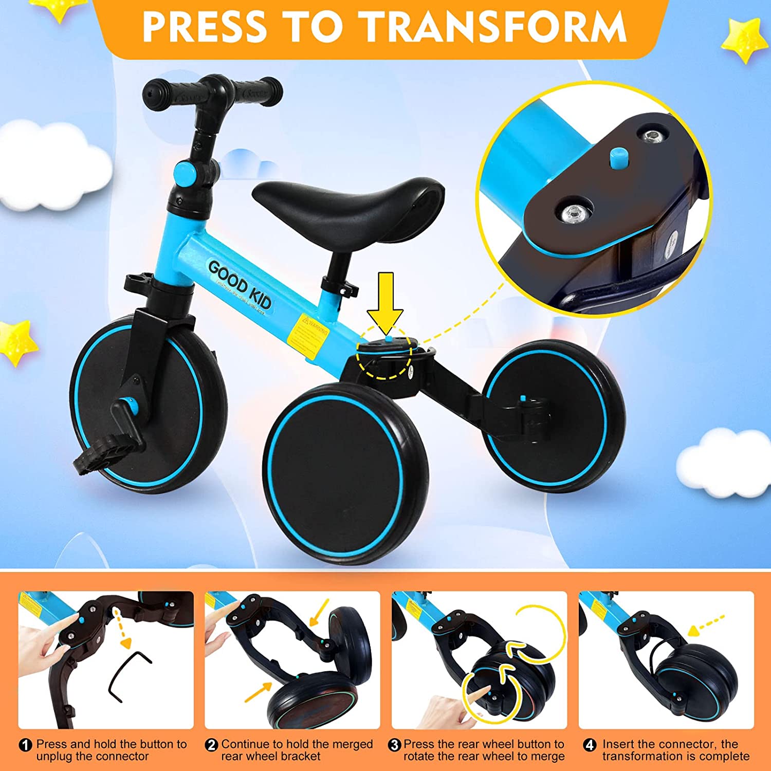 SKY-TOUCH 4 in 1 Kids Balance Bike Kids Tricycles for 1-4 Years, Toddlers Trike with Adjustable Seat Indoor Outdoor, Boys Girls Kids First Birthday Gifts Blue