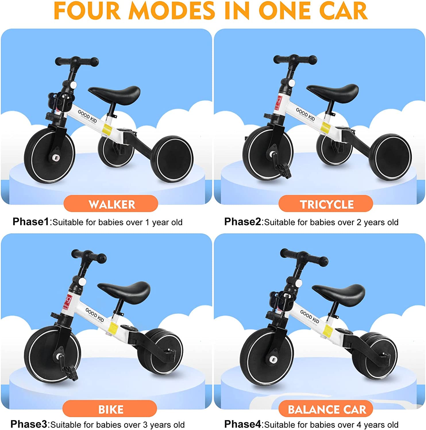 SKY-TOUCH 4 in 1 Kids Balance Bike Kids Tricycles for 1-4 Years, Toddlers Trike with Adjustable Seat Indoor Outdoor, Boys Girls Kids First Birthday Gifts White
