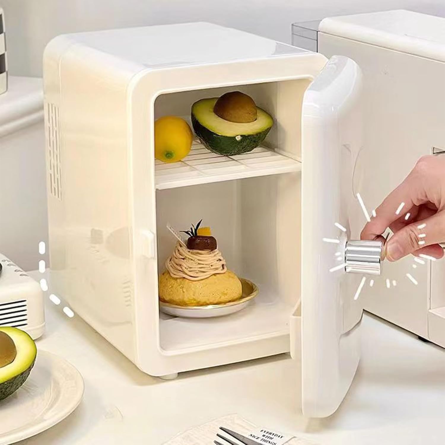 - Multifunctional Convenience: This compact 4-liter micro-fridge interior dimensions (13*13.5*20 cm) include a removable shelf is perfect for storing a variety of items such as food, drinks, cosmetics, and skincare products. Its convenience makes it an essential addition to any home, office, dormitory, or travel situation.