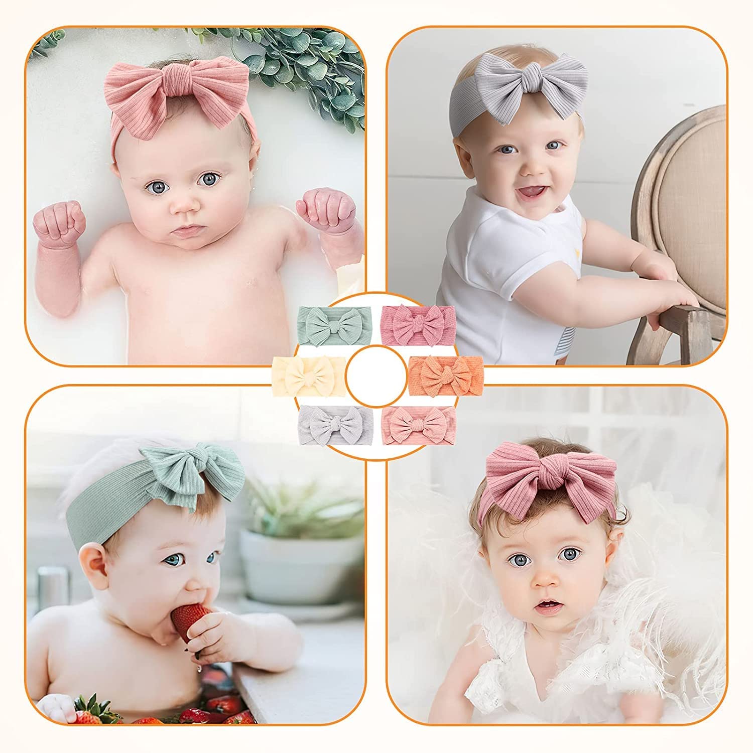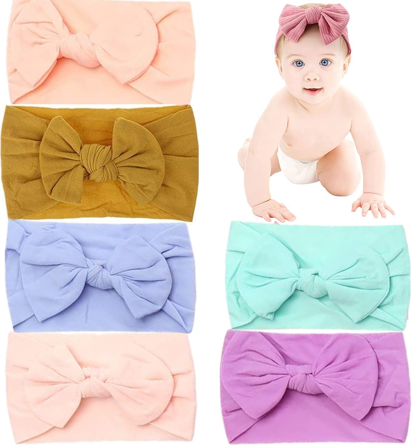 SKY-TOUCH 6Pcs Baby Girls Multicolored Headbands,Girls Bowknot Elastic Soft Hairbands,Nylon Stretchable Head Wrap Super Soft Hair Accessories for Newborn Baby Girls, Infants, Toddlers and Kids