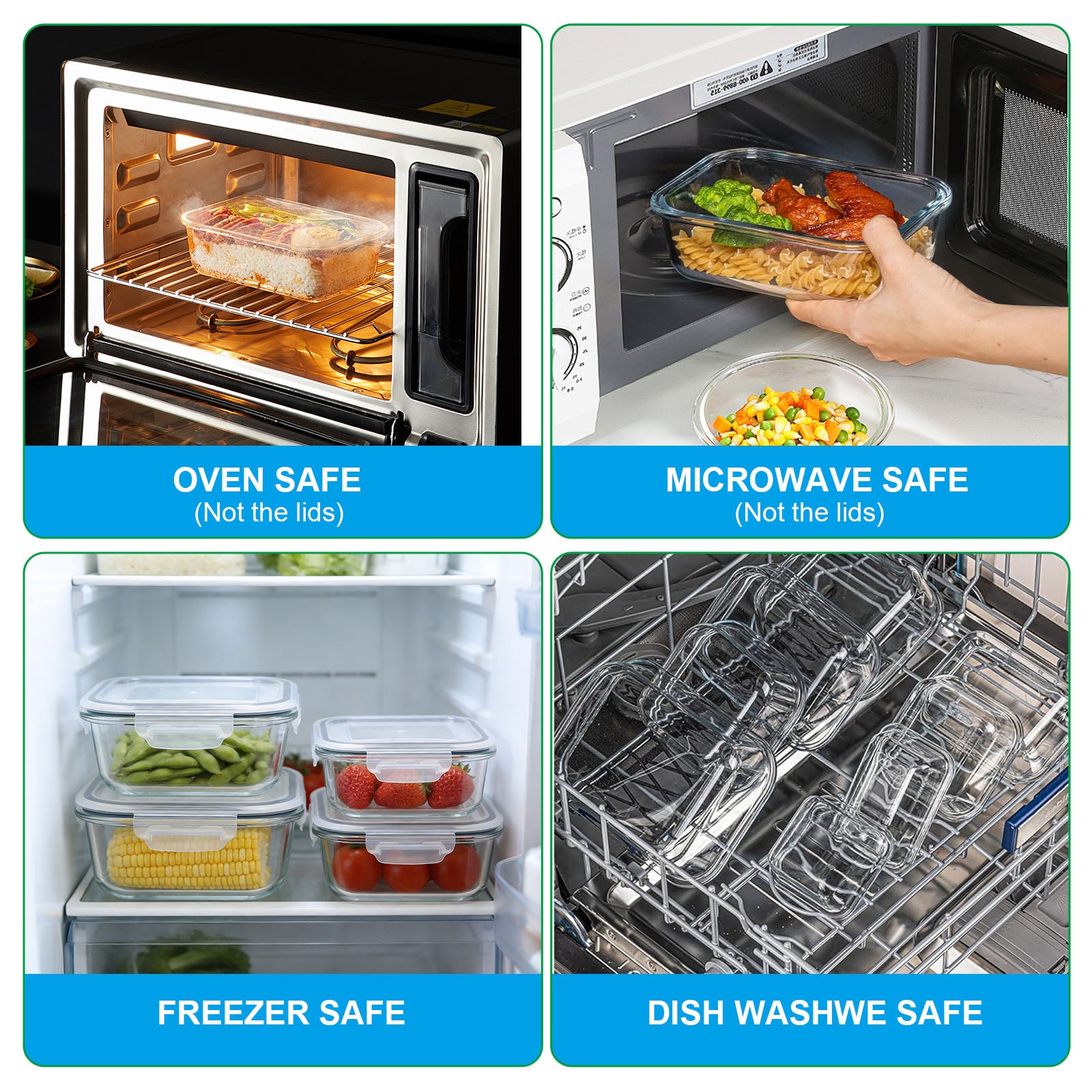 - 【Built to Last: Oven, Microwave, Freezer & Dishwasher Safe】:Crafted from high-quality borosilicate glass, these containers safely withstand extreme temperatures from -4°F to 752°F (-20°C to 400°C). Go seamlessly from freezer to microwave to oven for effortless cooking, reheating, and storage