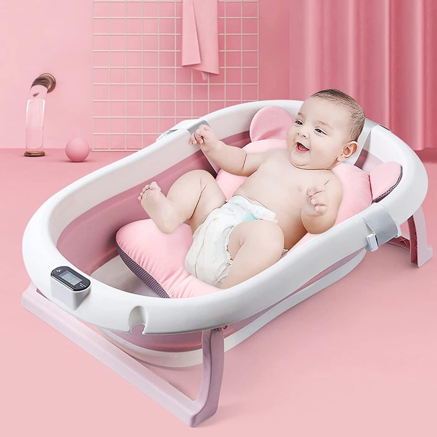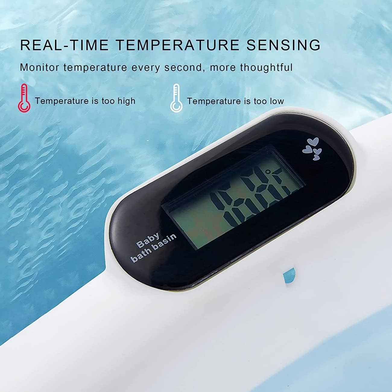 - 【Real-Time Temperature Sensing】Baby Bathtub is equipped with a temperature sensor, convenient for parents to adjust the water temperature in time. Ensure the safety and comfort of the baby when bathing.