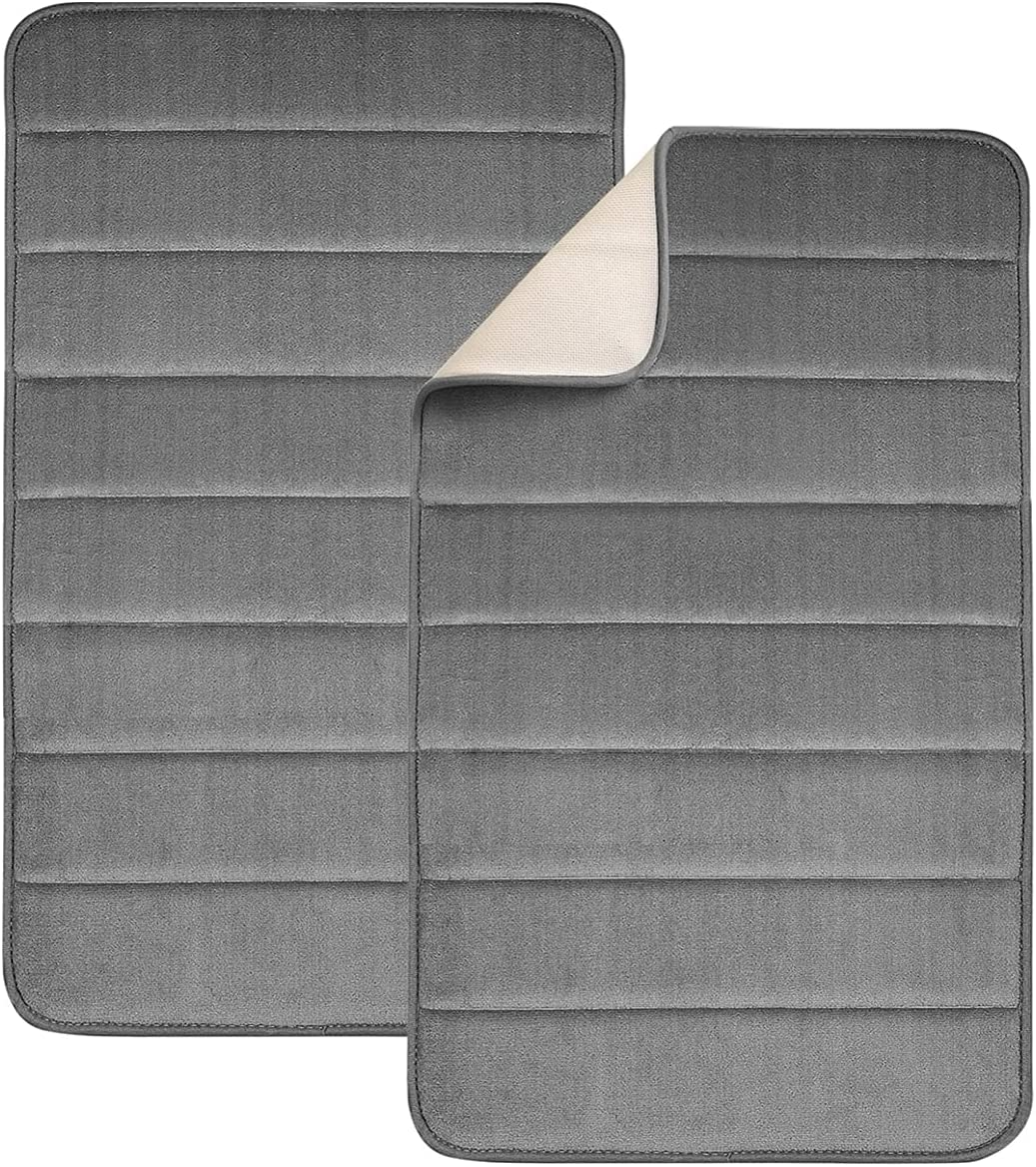 SKY -TOUCH Bath Mat 2 Pack, Memory Foam Bath Mat Non Slip,Soft & Comfortable Bath Mat With Highly Absorbent Bathroom Mat Non Slip for Shower, Tub and Floor, Non Slip Grey 50x80 cm