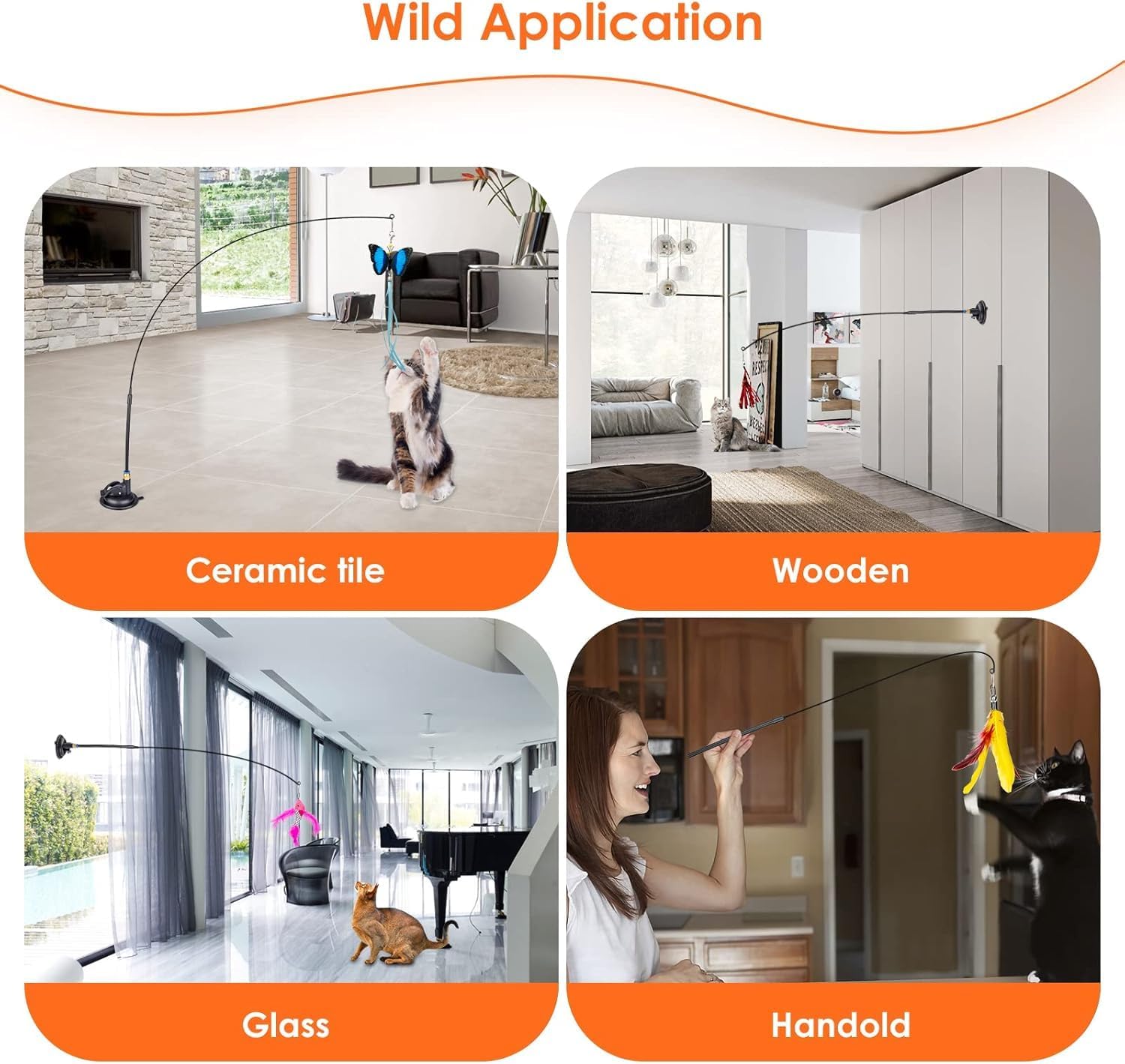 - BEST CHOICE OF CAT TOYS:This cat toys unlocks two ways to tease cats: 1. You can hold the cat stick to interact with the cat; 2. When you are tired or busy, insert the cat stick into the suction cup , it is an automatic cat toys with a bell. It helps cats have fun exercise, exercise body and brain and burn excess energy.