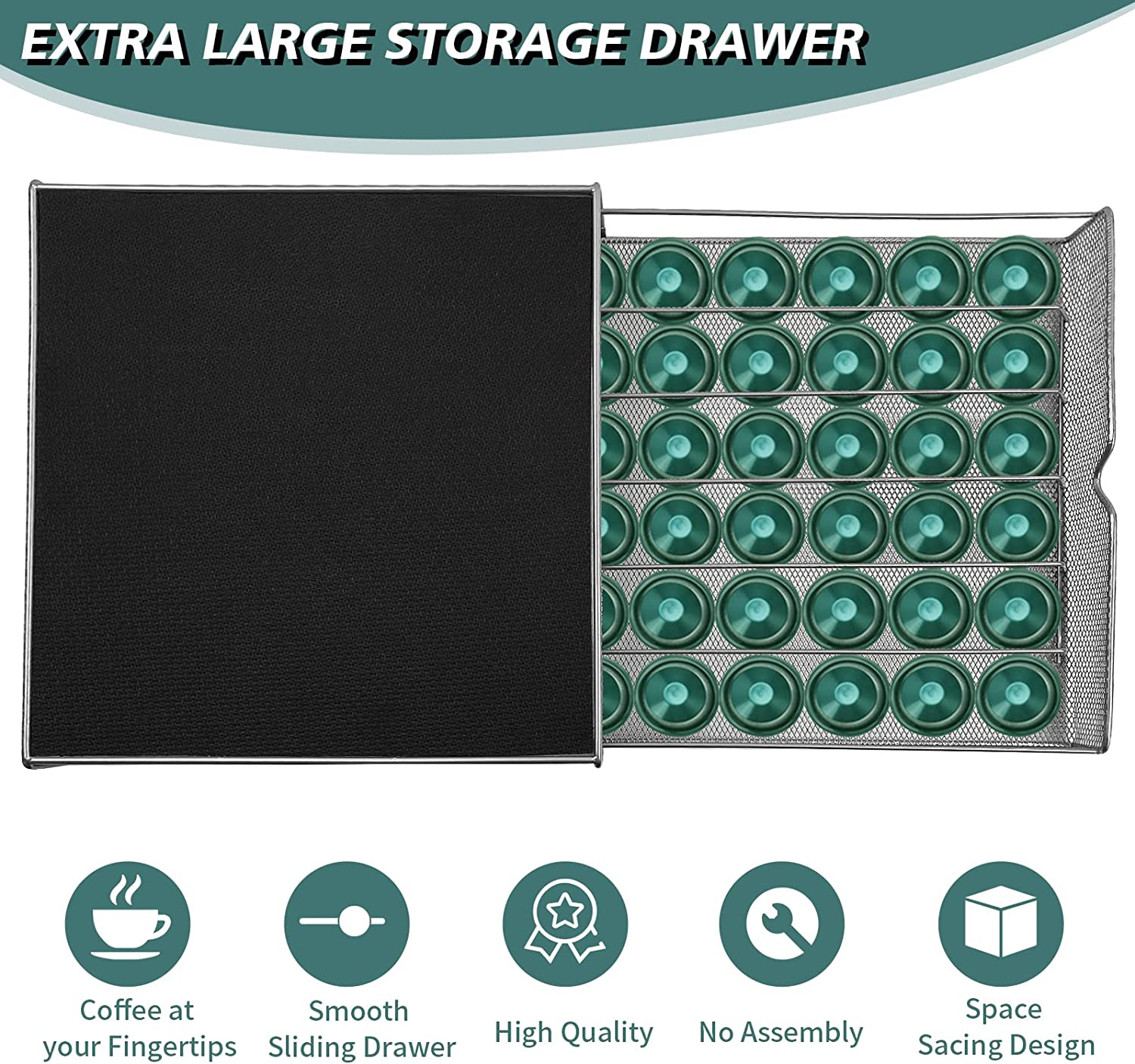 - SLEEK AND SIMPLE DESIGN: The coffee pod drawer organizer is designed with a simple yet modern touch Place it under any pod coffee maker, and watch it instantly blend into its office setting or kitchen decor.