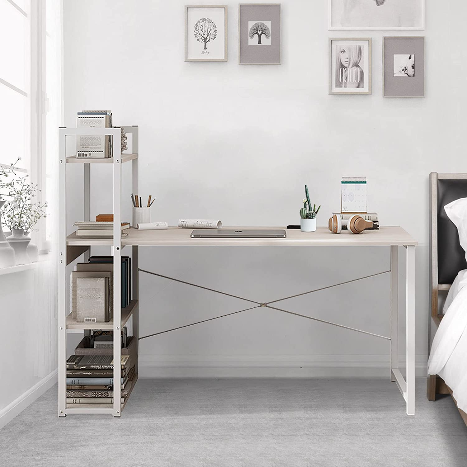 SKY-TOUCH Computer Desk Table with Shelves, 4 Tier Study Bookshelf Storage Reversible Office Corner Shelves Home Easy Assemble