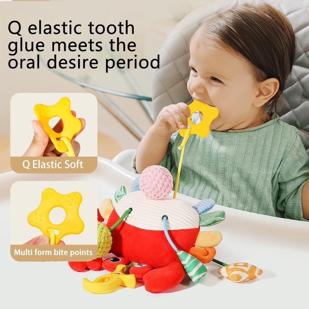 - Engaging Multi-Sensory Play: Features a cute crab design with various textures and sounds, including a mirror, rattle, crinkle, and bell to stimulate baby's sight, hearing, and touch.