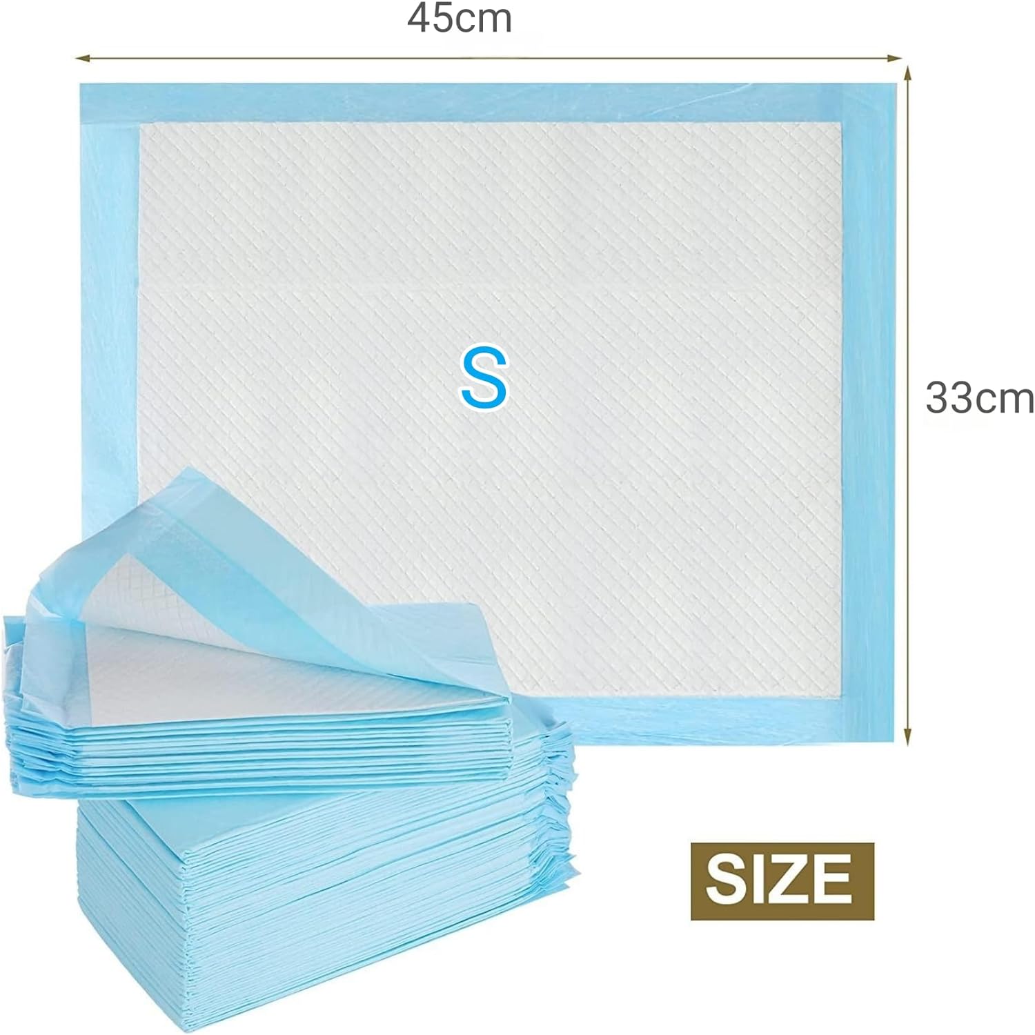 - Product Size: Three sizes of dog pee pads: S(45 x 33cm), M(45 x 60cm), L(60 x 60cm), Great for puppies, dogs, elderly canines, kittens, cats and other pets, also for your indoor or outdoor use.