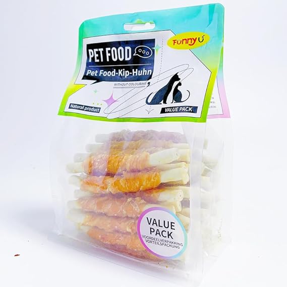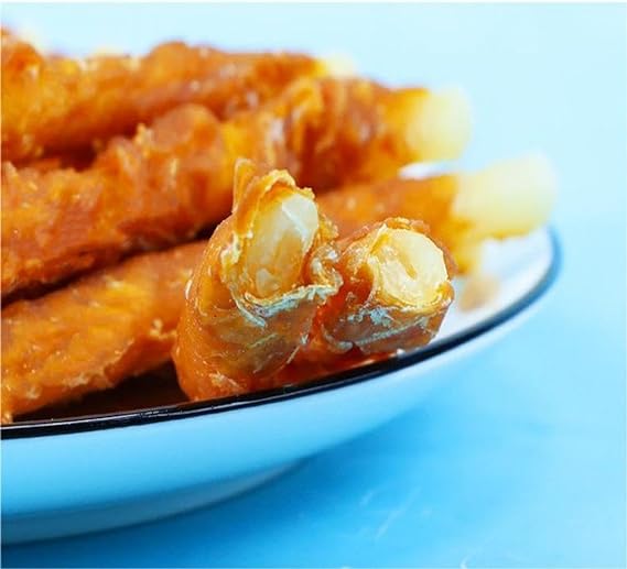 - Fresh Meat Craftsmanship: Our dog treats made from 100% natural chicken wrapped around a chewy beef hide, these treats are grain-free, high in protein and low in fat, which are easy to digest and helpful for dog’s gastrointestinal absorption.