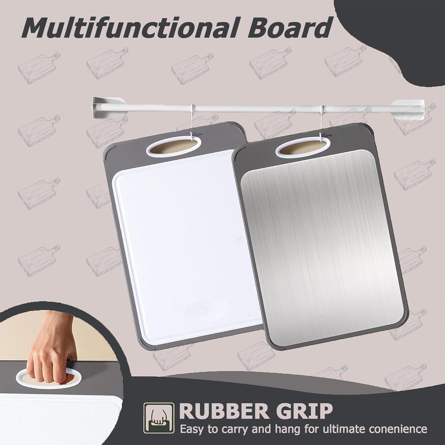 - ๐๐๐ซ๐ฌ๐๐ญ๐ข๐ฅ๐ ๐๐ฎ๐๐ฅ-๐๐ฎ๐ซ๐๐๐๐ ๐๐๐ฌ๐ข๐ ๐ง: This 2-in-1 stainless steel steel chopping board features a double-sided constructionโone side is for cutting raw and cooked meat, while the other side, a wheat straw surface, is for cutting vegetables and fruit. Additionally, the garlic grinding area saves cooking time, making it a must-have home essential