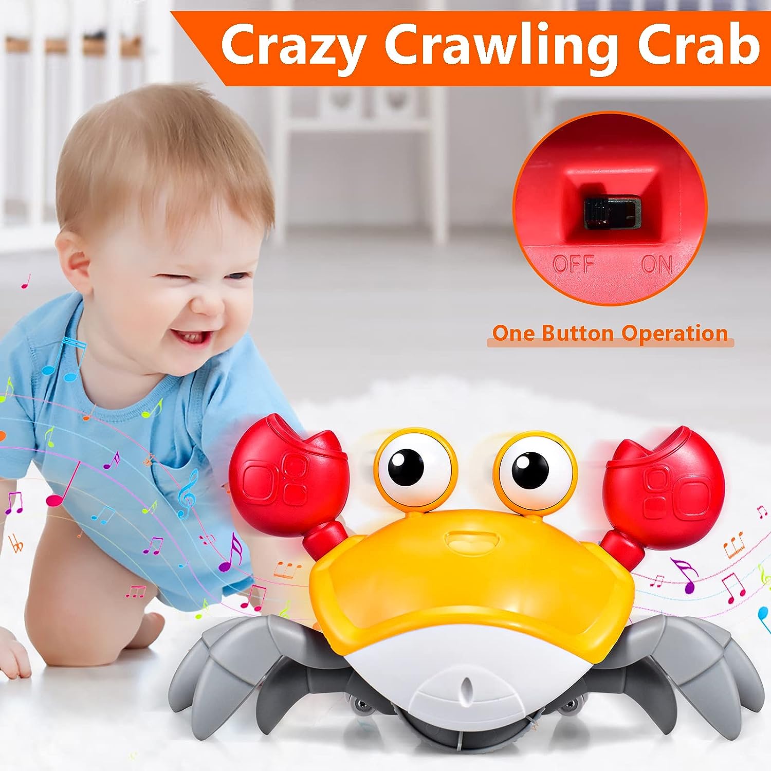 SKY-TOUCH Electric Runaway Crab,Crawling Crab Baby Toy with Music and LED Light Up,Toddler Interactive Learning Development Toy with Automatically Avoid Obstacles,For Babies, Toddlers and Kids