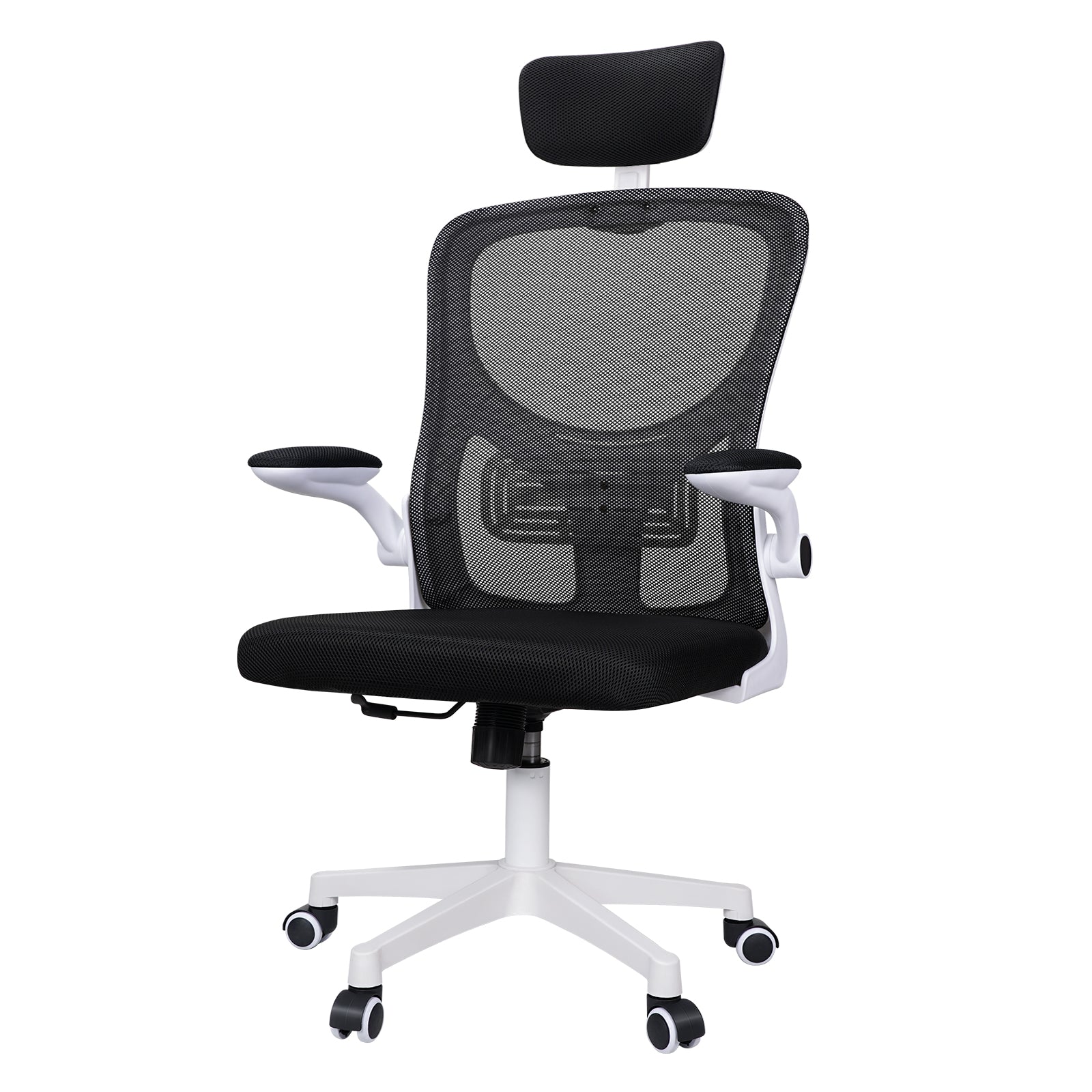 - 【Adaptable and Space-Efficient Design】Maximize your workspace with versatile functionality. The chair features flip-up arms for flexibility and can be tucked neatly under your desk. A simple push-pull mechanism allows you to lock it upright or enjoy a gentle rocking motion, while the seat height is fully adjustable to suit your needs.