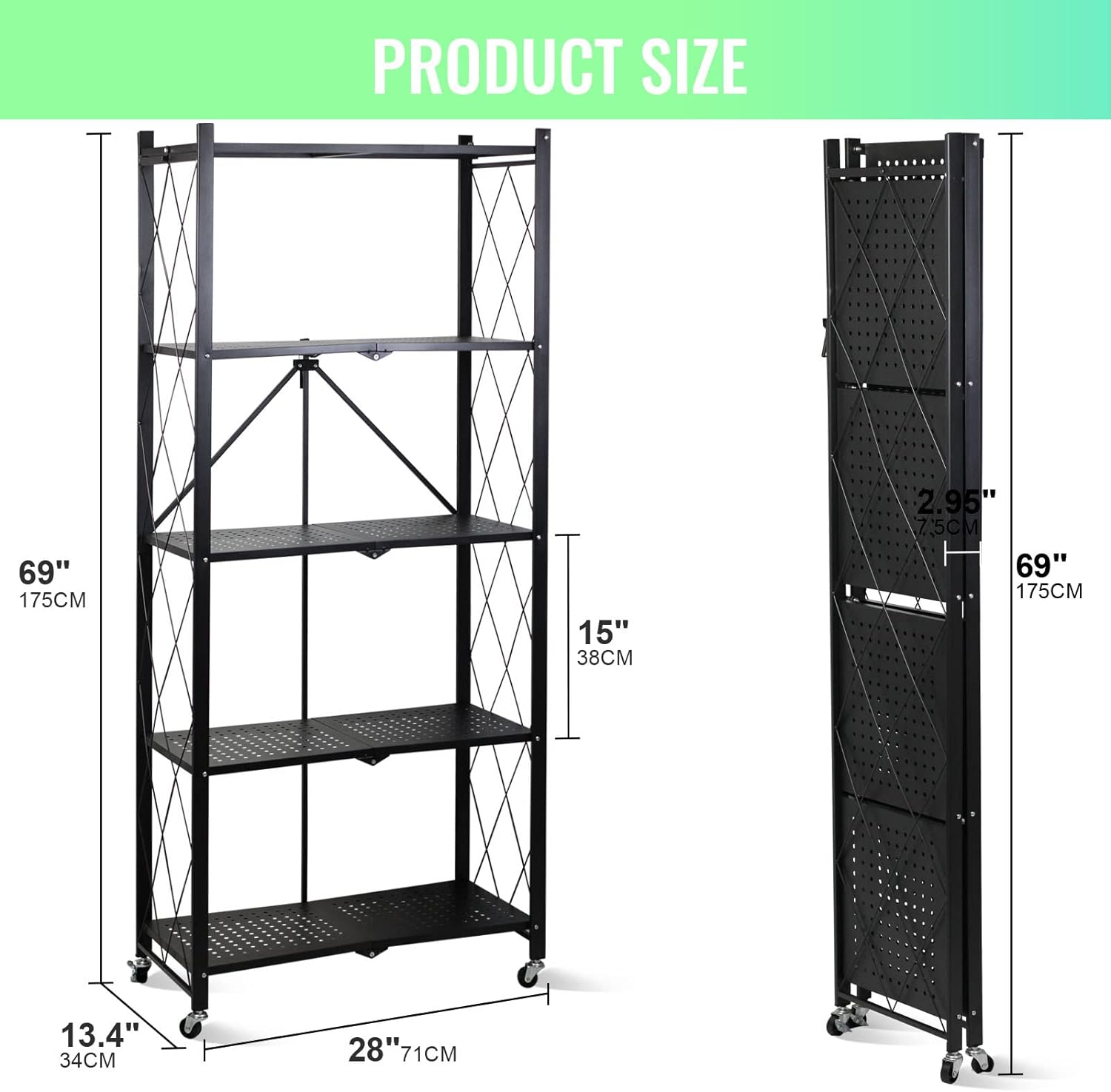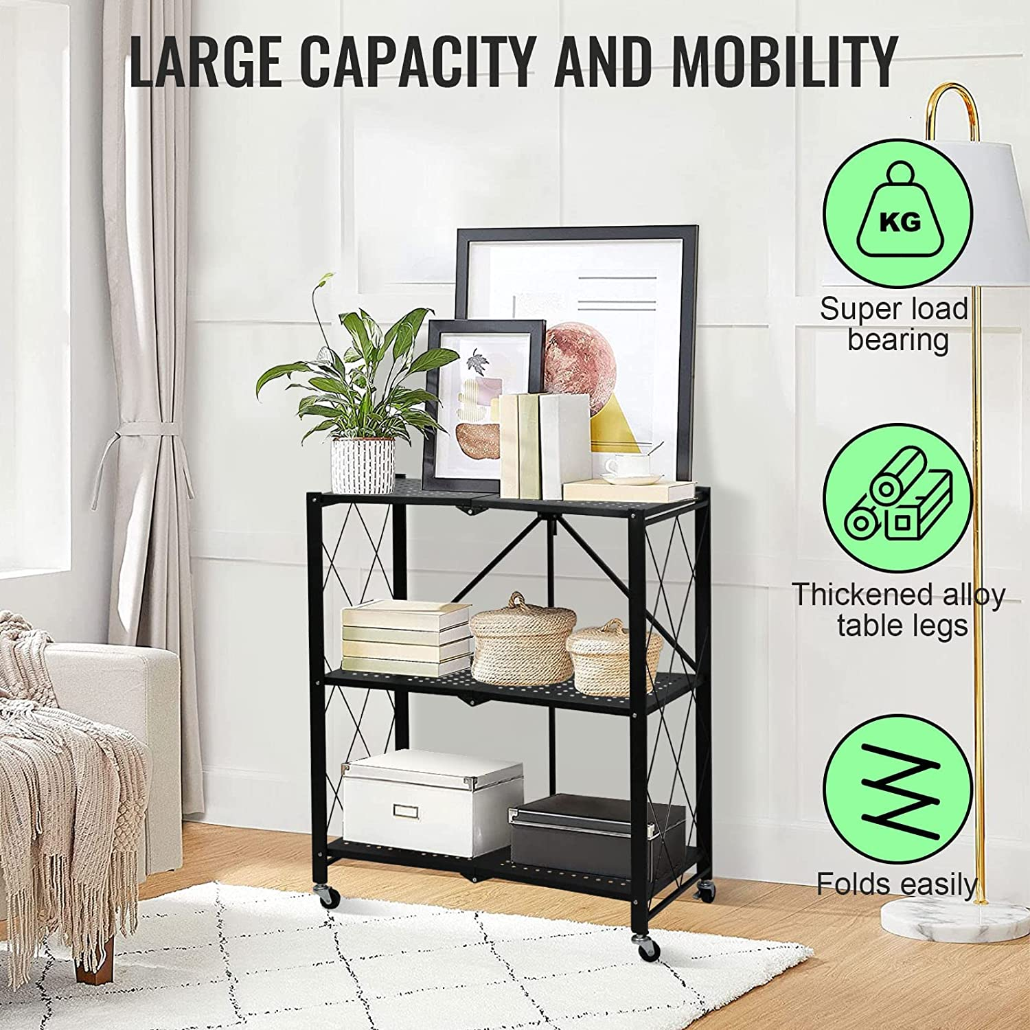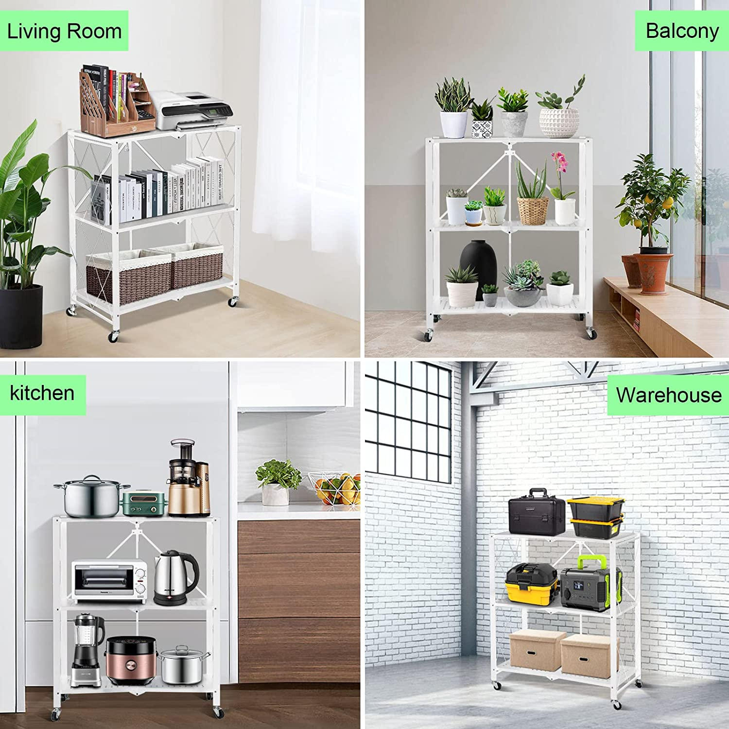 EASY TO USE: This storage rack is 100% pre-assembled, can be folded or unfolded in seconds without any tools. Shelving for almost anywhere in your home and easily folds flat for storage when not in use.