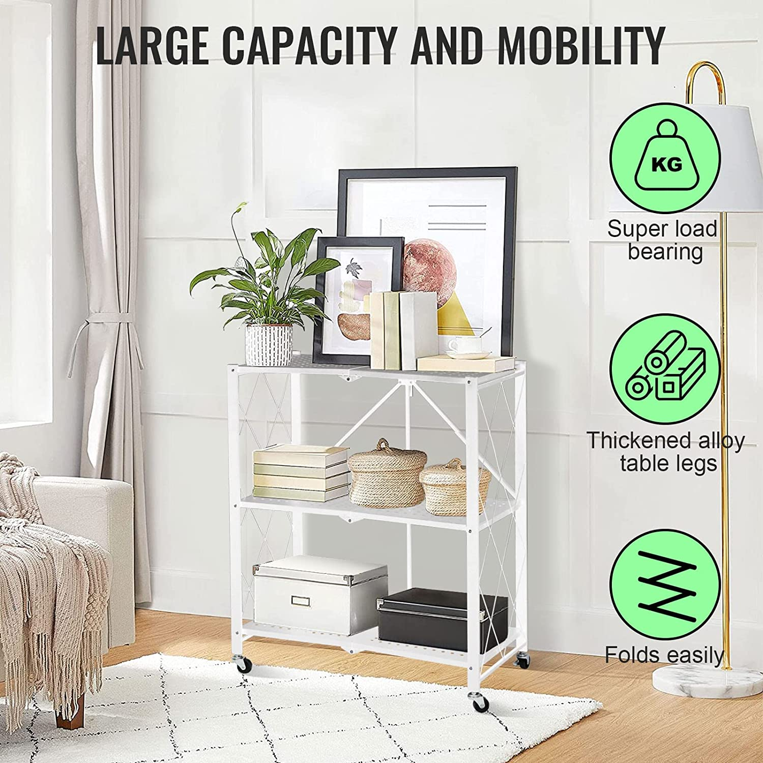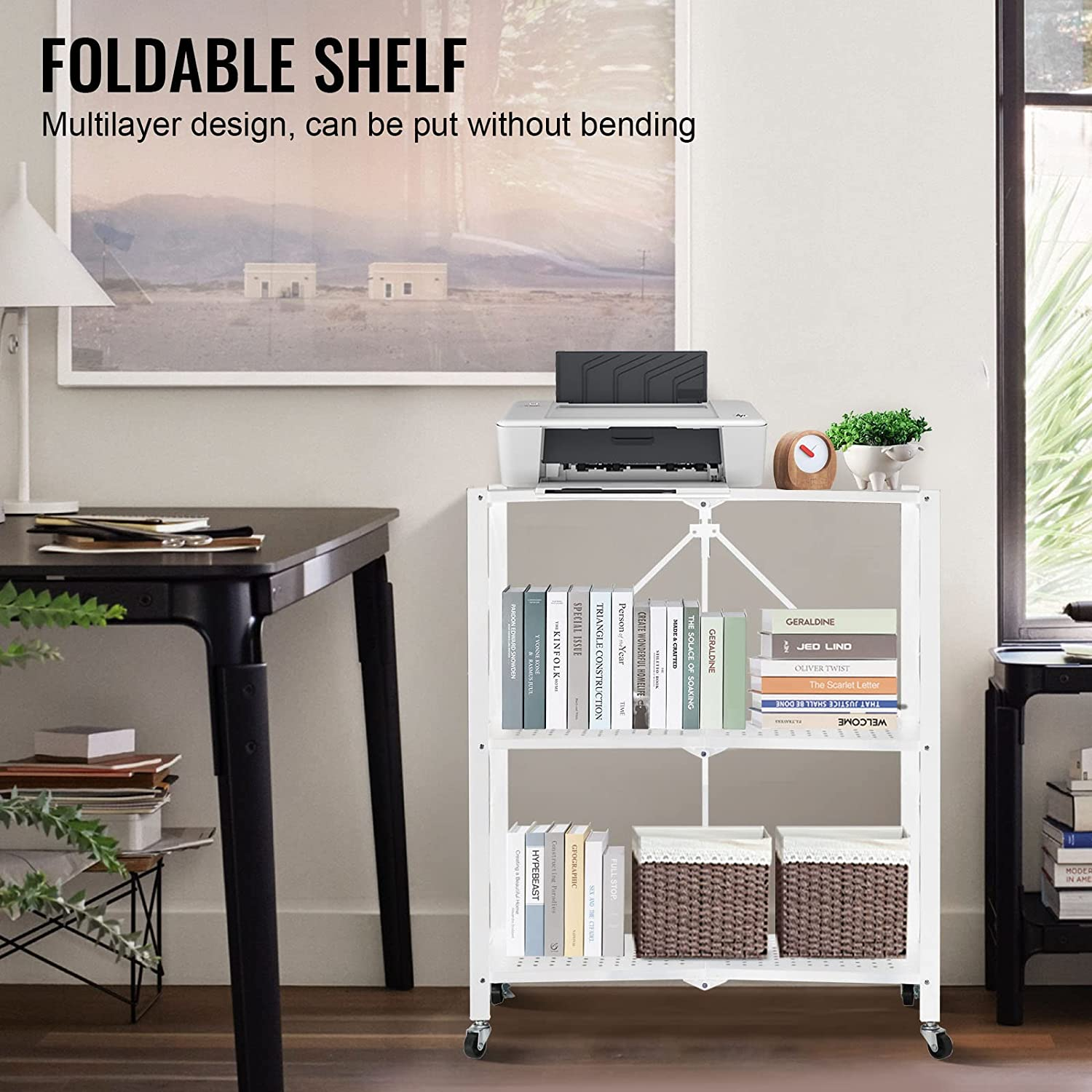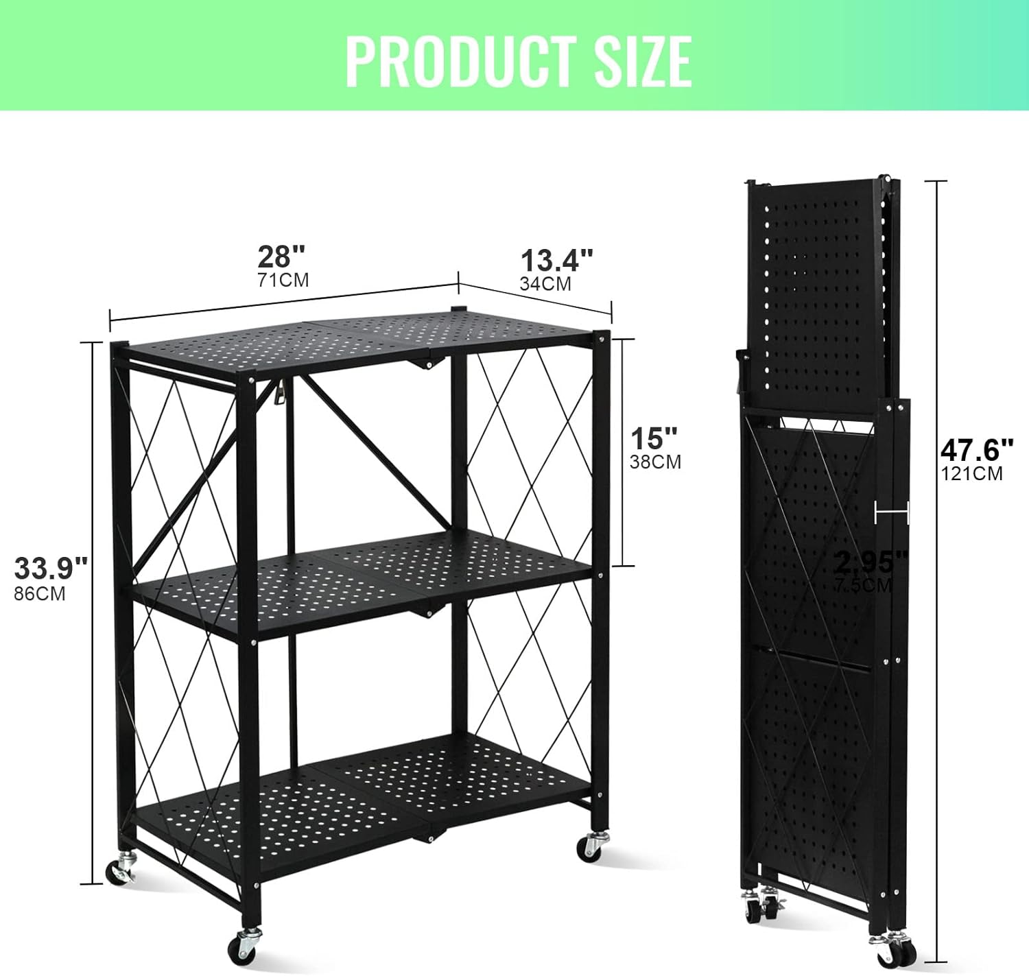 EASY TO USE: This storage rack is 100% pre-assembled, can be folded or unfolded in seconds without any tools. Shelving for almost anywhere in your home and easily folds flat for storage when not in use.